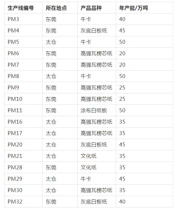 此次停機(jī)檢修東莞玖龍絕大多數(shù)紙機(jī)涉及到,而太倉玖龍幾乎是全部紙機(jī)參與這次停機(jī)檢修計(jì)劃。以上紙機(jī)年產(chǎn)能情況(僅供參考)如下: