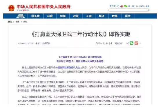 6月13日,國(guó)務(wù)院李總理主持召開(kāi)國(guó)務(wù)院常務(wù)會(huì)議,部署實(shí)施藍(lán)天保衛(wèi)戰(zhàn)三年行動(dòng)計(jì)劃,明確自2019年1月1日起,在全國(guó)全面供應(yīng)符合國(guó)六標(biāo)準(zhǔn)的車用汽/柴油。開(kāi)發(fā)推廣節(jié)能高效技術(shù)和產(chǎn)品,培育發(fā)展節(jié)能綠色環(huán)保產(chǎn)業(yè)。