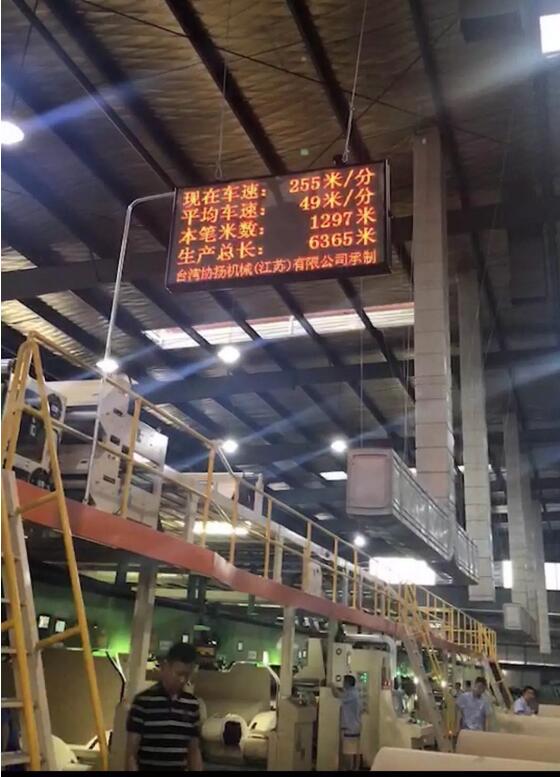 該瓦楞紙板生產(chǎn)線(xiàn)是由協(xié)揚(yáng)機(jī)械(江蘇)有限公司制造、安裝,兩臺(tái)正壓卡匣單面瓦楞機(jī),配置A、B、E三種楞型,可切換生產(chǎn)AB、BE、A、B、E等瓦型組合的三、四、五層紙板。在滿(mǎn)負(fù)荷運(yùn)作的情況下年產(chǎn)值可達(dá)4.5個(gè)億。