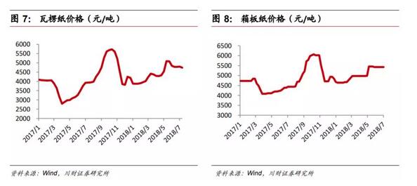 二、人民幣貶值,利好漿價 近期人民幣大幅貶值態勢延續(美元兌美元即期匯率由年初的6.51升至6.83、人民幣累計貶值幅度達4.92%),對造紙等原料進口型企業形成壓力的同時有效支撐內盤木漿價格上行。 8月3日我國國務院再公布第二輪對美加征的關稅反制清單,涉及范圍涵蓋進口木漿的所有種類(其中化學針葉漿、化學闊葉漿均加征關稅5%),推升我國進口紙漿的成本約為5%。預期后續我國內盤漿價仍有上漲空間。 三、東莞玖龍、建暉再領漲廢紙收購價 在供給側改革的驅動下,環保政策趨嚴、外廢配額嚴格限制、檢查形勢趨嚴等多重因素疊加下,廢紙供需失衡導致國廢價格上漲,從而推動下游成品紙價格的上漲。外廢自3月開始上漲,漲幅達20%-50%,國廢價格持續上漲,廢黃板紙和廢純報紙價創近兩年新高,年內漲幅達40.6%和7.8%。