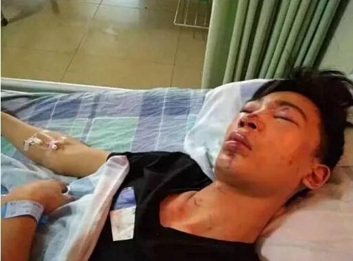 每天工作12小時學生工身體吃不消 吳焰江來自四川宜賓,下學期就要讀高二,他的父母在寮步鳧山打工。每年暑假,他都會來寮步與父母團聚。想到已經成年了,今年暑假來到東莞后,吳焰江特意去找了一份暑期工來做,鍛煉自己。“暑期工工廠是我自己去找的。”吳焰江說,7月19日,他找到了這家位于寮步鳧山祥興街58號的東莞市海X包裝有限公司。當時接待他的是工廠廠長陽某。“當時他跟我說的是,對我這個學生,每天只需工作8小時,每天80塊。” 這是吳焰江第一次打暑期工,沒有任何社會經驗的他,對陽某的提法沒有任何異議。7月20日上午8點,吳焰江準時出現在工廠的車間里。“主要負責折禮品盒的包裝。”吳焰江說,每天他都是上午8點上班工作到中午12點下班,再走回去家里吃中午飯。下午1點半準時又上班,工作到晚上6點下班。吃過晚飯后,晚上6點半又繼續上班,直到晚上10點才下班回家。“每天工作的時間都在12小時左右,完全不是之前所說的8小時。” 吳焰江并沒有將工廠里發生的一切告訴父母,他默默的承受,并想堅持做完一個月。“但做了十多天,我發現我身體根本無法承受,堅持不下去了。”吳焰江說,8月1日晚上,他第一次向工廠廠長陽某辭工,陽某以“工作未滿一個月”拒絕了他的要求。8月2日上午9多,吳焰江再次找到陽某提出辭工并結算這十多天的暑期工工資。去之前,吳焰江偷偷的用手機錄了音。不想吳焰江的第二次辭工徹底激怒了陽某。 倉促從四五米高的辦公室二樓跳下 當時二樓辦公室里只有陽某和他。“陽某先是讓我把廠牌交出來,我以為交完廠牌,他就會把工資結算給我,哪里知道,他一接過廠牌,就把我的廠牌撕了個粉碎。”吳焰江說,之后,陽某很得意的說“現在你廠牌都沒了,怎么證明有在我工廠工作過,怎么結算工資。”吳焰江說,陽某說上述這話時,還不停的用辦公室桌子上的硬紙盒打他的頭。 情急之下,沒有社會經驗的吳焰江說了一句“廠牌撕了,我還有錄音”。吳焰江說,他話音剛落,陽某就沖了過來,要搶他的手機。“我死死的護著,兩人在辦公室里爭來爭去,的確發生了肢體沖突。”吳焰江說,后來工廠又有兩個人沖進了辦公室,幫著陽某,對他的是拳打腳踢,要搶他的手機。“我一個學生,怎么是3個年輕體壯工人的對手。” 吳焰江的手機在雙方搶奪中摔爛。“之后他們還是不斷的在打我。”再度醒來,吳焰江已經在南方醫科大學寮步醫院的病床上,面部縫針10余針,鼻軟骨骨折,右腿亦有扭傷。“他們打我,我要活命,門被關上了,我倉促之下,只能是跳窗逃生了。”南都記者見到吳焰江時他的雙眼和嘴唇還是淤腫著。“好在跳下來沒有摔斷骨頭。”一旁的家人說。