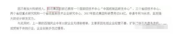 工商局發(fā)布的文件也指出:因不斷加大科研投入,勝達集團目前已擁有一個國家級技術(shù)中心“中國紙制品研發(fā)中心”,三個省級技術(shù)中心、兩個省級重點研究院和一個省級高新技術(shù)企業(yè)研究中心,2017年勝達集團科研費用達8.8億,申請專利70余項,呈現(xiàn)強大的設(shè)計研發(fā)實力。