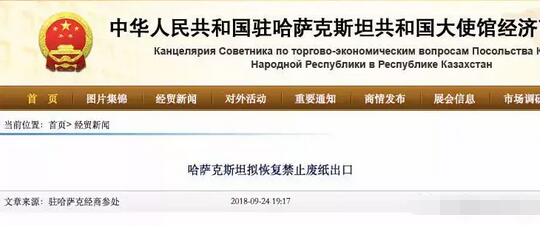 據統計,2016年11月至2017年4月,哈薩克斯坦投資發展部曾禁止出口可再生紙、紙殼和廢紙,當年紙品實際產量達到14.12萬噸,產值472億堅戈,較2015年分別增長50%和33.5%,同時促進了稅收和就業增長。