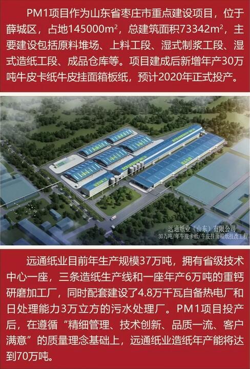 據(jù)悉,遠(yuǎn)通紙業(yè)原名山東華眾(華彩)紙業(yè)有限公司,2008年被森信集團(tuán)收購后重組并改名為遠(yuǎn)通紙業(yè)(山東)有限公司。目前生產(chǎn)規(guī)模為37萬噸,PM1項(xiàng)目投產(chǎn)后,遠(yuǎn)通紙業(yè)造紙年產(chǎn)能將達(dá)70萬噸。