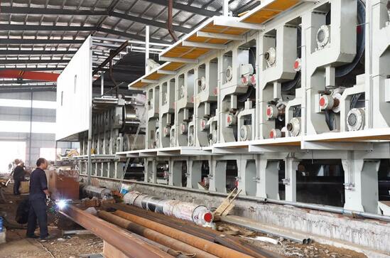 建設內容:位于五港鎮再生紙業產業園,一期主要以外購成品紙漿、紙品為原料,生產各類包裝紙,目前廠房已建成,造紙設備正在安裝。據了解,項目建成投產后,可年產瓦楞紙10萬噸,年可開票銷售3億元,入庫稅金1500萬元。圖為設備安裝現場。