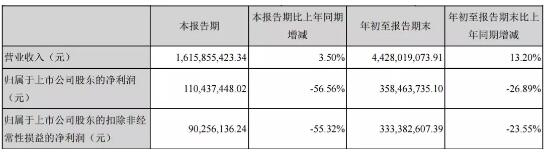 而放眼整個(gè)前三季度(1-9月),景興紙業(yè)的財(cái)務(wù)數(shù)據(jù)則為:營業(yè)收入44.28億元,同比增長13.2%;歸屬于上市公司股東的凈利潤3.58億元,同比下降26.89%。