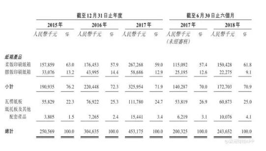 順億控股申請香港主板上市,市場份額排名第六 順億控股,成立于1999年,是一家一站式增值包裝解決方案服務供應商,專注于制造柔版印刷紙箱、膠版印刷紙箱、瓦楞紙板、紙托板及其他配套紙制品。 目前,順億控股的的生產基地主要位于福建,主要附屬公司有福建華發(fā)包裝、廈門華源發(fā)紙業(yè)、福清華發(fā)包裝,分別在漳州、廈門和福清三地擁有生產廠房,總面積為13.41萬平方米。 據上海元哲報告所述,2017年,順億控股在中國一站式增值瓦楞包裝解決方案服務市場的市場份額約為0.8%,排名第六。