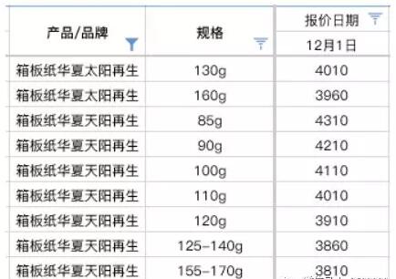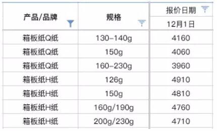 導語:進入12月,部分紙廠又開始放出漲價消息,例如3日起東莞玖龍宣布?垺⑼呃慵垉r格上調50元/噸,東莞金州宣布箱板紙、瓦楞紙價格上調50元/噸,東莞上隆、東莞旭豐、東莞順裕高瓦上調50元/噸等,目前此輪漲價多集中在廣東地區,在緩慢執行中,是否大面積落實還需要進一步密切關注。