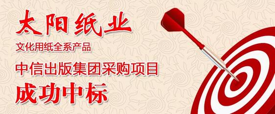 2018年11月13日,太陽紙業(yè)文化用紙銷售部再傳捷報,中信出版集團(tuán)股份有限公司公布了“2018-2019年度圖書印裝材料采購項目”中標(biāo)公告,太陽紙業(yè)旗下:金太陽美術(shù)純質(zhì)紙、金太陽書紙(玉白)、金太陽膠版紙、華夏太陽膠版紙、華夏太陽輕型紙1.8米白、華夏太陽銅版紙成功中標(biāo)。