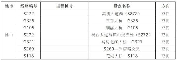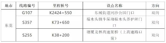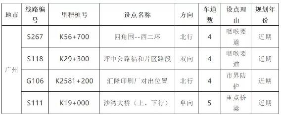 注:S256線(K66+200)路段大致位置在江龍大道下圍村路段 根據(jù)部署,廣州近期還將建設以下4處監(jiān)測點: