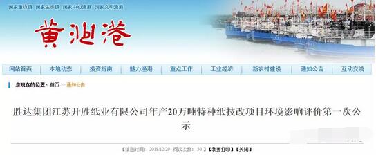 近日,江蘇省射陽縣黃沙鎮人民政府對勝達集團江蘇開勝紙業有限公司年產20萬噸特種紙技改項目,進行環境影響評價第一次公示。