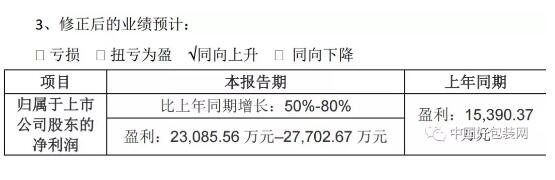 1月30日晚間,合興包裝發布了《2018年度業績預告修正公告》,調整了2018年1月1日至2018年12月31日期間的業績預期。
