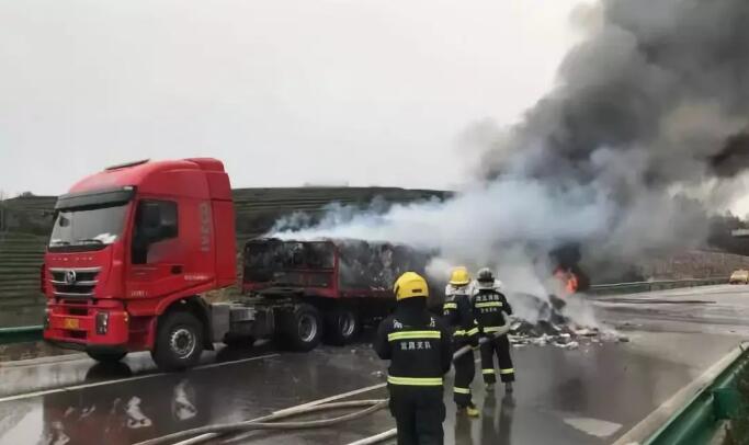 中新網湖北新聞3月7日電3月7日下午,岳宜高速枝城往宜都方向一滿載壓縮廢紙的半掛貨車突然起火,宜都市消防大隊出動2輛消防車12名消防指戰員到場處置,成功將火撲滅,未造成人員傷亡。 據了解,起火貨車為一輛裝載近30噸壓縮廢紙的半掛貨車,駕駛員在行駛途中發現后輪胎起火后,立即將車輛停放在應急車道,并使用隨車攜帶的滅火器滅火。由于火勢過大且已經蔓延至半掛平臺,駕駛員立即撥打119求助。 宜都市消防大隊在接警后立即趕到現場,并隨即調動枝城、興發2支專職消防隊到場增援。消防指戰員到達現場后,首先將利用水槍給半掛車油箱進行降溫,同時將現場明火進行撲滅。30分鐘后,現場明火已完全熄滅。消防指戰員配合交警、路政部門對現場進行清理。 消防部門提示廣大駕駛員,平時應做好輪胎保養,及時更換輪胎,避免輪胎起火自燃事件,駕車途中遇到火災應第一時間撥打119求助。 二、浙江義烏東高速口變身“垃圾堆”近20噸廢紙散落一地