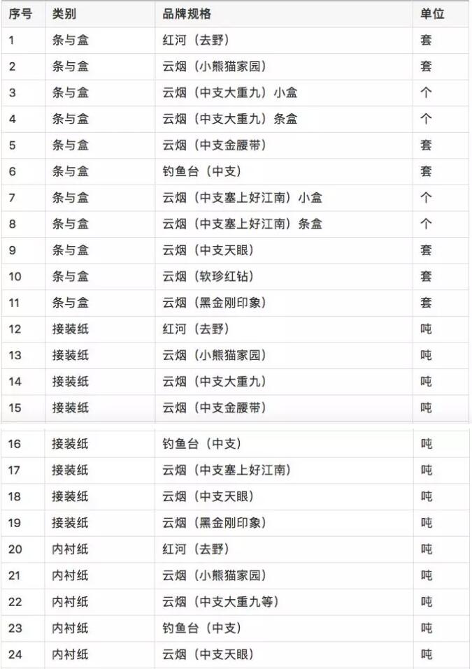 紅云紅河煙草(集團)發布2019年新產品卷煙材料采購項目招標公告。3月5日至3月11日投標報名并獲取招標文件,3月26日9時30分投標文件截止遞交。 紅云紅河煙草(集團)2019年卷煙材料招標,3月11日截至報名 紅云紅河煙草(集團)有限責任公司2019年度新產品卷煙材料采購項目招標(項目編號:HCZB02201902001): 1,項目概況與服務內容 1.1,項目名稱: 紅云紅河煙草(集團)有限責任公司2019年度新產品卷煙材料采購項目 1.2,招標人:紅云紅河煙草(集團)有限責任公司 招標代理機構:昆明華辰招標代理有限公司 1.3采購內容: 新產品卷煙材料采購,具體內容:
