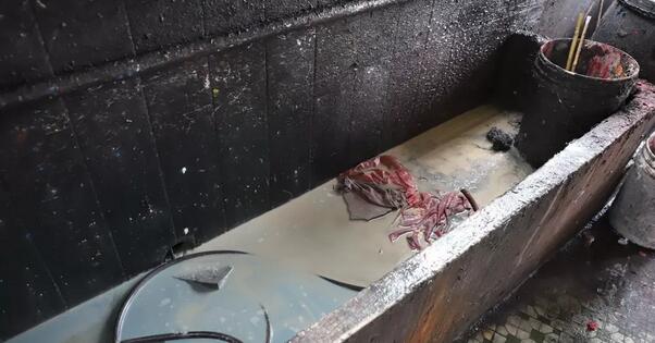 其中一家企業藏于北柵鳳寧路27號,偌大陰暗的廠房里廢水流淌,未經任何處理被擅自排進下水道、進入河流,對鎮內河涌的污染相當大。