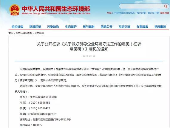 近日,生態環境部辦公廳印發通知,向社會公開征求《關于做好引導企業環境守法工作的意見(征求意見稿)》意見。《意見》明確要求,建立單位內部“首接責任制”,對行政相對人實行有關事項“一次性告知”;對一般違法行為慎用查封、扣押等措施,嚴格禁止“一律頂格處罰”“一律關停”“先停再說”等簡單粗暴行為。