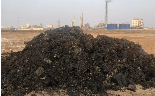 圖1 在博匯集團(tuán)廠區(qū)污泥堆場下挖掘出來的黑色焦油狀物質(zhì)。