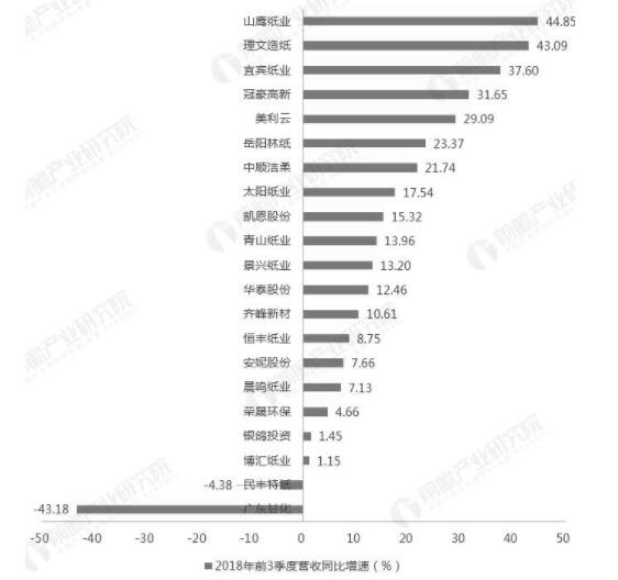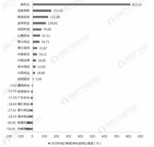 數(shù)據(jù)來源:前瞻產(chǎn)業(yè)研究院整理 (備注:1-2月、6月全國機(jī)制紙及紙板累計(jì)產(chǎn)量增速為-2.5%、-0.7%) 超1/3企業(yè)凈利潤同比下滑,業(yè)績表現(xiàn)欠佳 目前,包括港股上市的玖龍紙業(yè)和理文紙業(yè)在內(nèi),國內(nèi)造紙行業(yè)的主要有22家上市公司。從2017年全年的業(yè)績表現(xiàn)來看,造紙行業(yè)2017年的業(yè)績表現(xiàn)普遍向好,所有公司的營收都有所擴(kuò)張,其中僅安妮股份、廣東甘化2家公司的凈利潤出現(xiàn)下滑,數(shù)量占比不到10%。其中,年?duì)I收規(guī)模超過100億元的有6家公司,凈利潤規(guī)模突破20億元的有5家公司,玖龍紙業(yè)在營收規(guī)模和凈利潤規(guī)模上均遙遙領(lǐng)先與其他企業(yè),穩(wěn)居行業(yè)第一。總體來看,目前在營收和凈利潤規(guī)模處于行業(yè)領(lǐng)先地位的主要是玖龍紙業(yè)、晨鳴紙業(yè)、理文紙業(yè)、太陽紙業(yè)和山鷹紙業(yè)。 而從2018年前三季度造紙行業(yè)內(nèi)企業(yè)的業(yè)績表現(xiàn)來看,相較于2017年同期出現(xiàn)了明顯下滑。具體來看,由于行業(yè)龍頭玖龍紙業(yè)未披露最新財(cái)務(wù)數(shù)據(jù),所以僅對其余21家公司進(jìn)行分析。在營收方面,明豐特紙、廣東甘化兩家公司同比出現(xiàn)下滑;凈利潤表現(xiàn)更糟,有8家公司凈利潤出現(xiàn)同比下滑,數(shù)量占比超過了1/3,利潤下滑企業(yè)中更是包括了晨鳴紙業(yè)和博匯紙業(yè)等營收體量較大的公司。因此,總體來看,2018年前3季度,我國造紙企業(yè)業(yè)績出現(xiàn)頹勢,發(fā)展面臨一定的困境,而這主要是因?yàn)樵牧瞎┙o收緊和下游需求不振所致。 2018年前三季度21家造紙上市公司營收、利潤增速統(tǒng)計(jì)情況