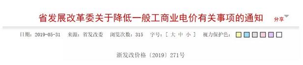 浙江。7月1日起,降低一般工商業及其他用電目錄電價平均每千瓦時5.29分(含稅)