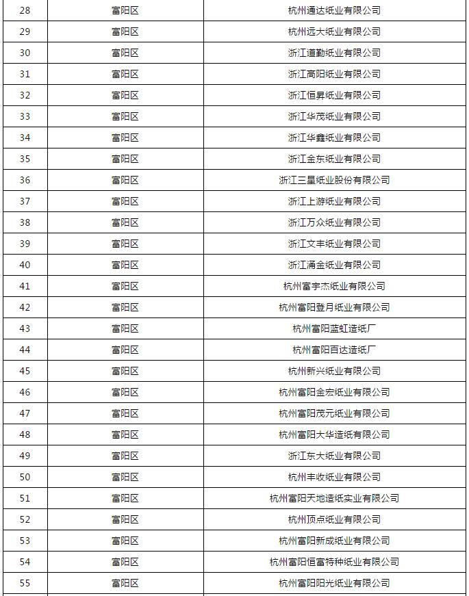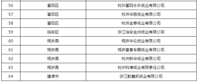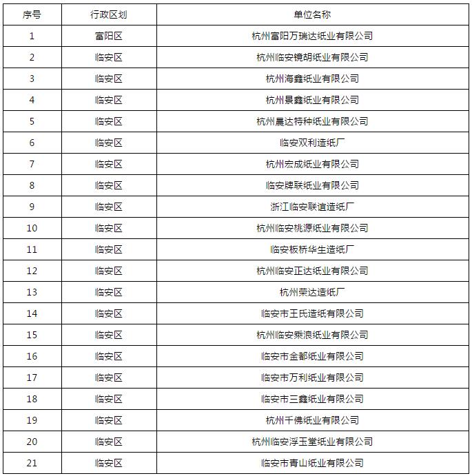 在4月底公布的杭州市重點排污單位名錄中,杭州市共確定2019年重點排污單位709家,其中造紙相關企業64家,加上此次補錄的21家,造紙企業的總數量達到85家。首批名單如下: