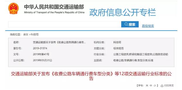 5月31日,交通運輸部發布《收費公路車輛通行費車型分類》行業標準的公告,這意味著按車(軸)型收取通行費,并且新的車型劃分標準已正式發布,新標即將進入施行階段!