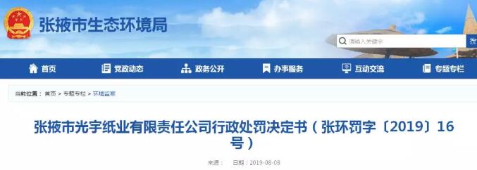 導語:8月8日,甘肅省張掖市生態環境局(以下簡稱環境局)公布了張掖市光宇紙業有限責任公司的行政處罰書,據了解,該企業私自架設水泵和軟管將微濾機沉漿池內未經處理的廢水、泥漿排放至林地內,被處罰約52萬元!