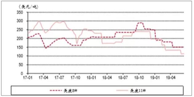 數據來源:公開資料整理 二、廢紙價格走勢分析 2018年進口廢紙1703萬噸,全年相較17年減少870萬噸。17年全年消耗廢紙漿6300萬噸,18年廢紙進口的減少相當于減少了724萬噸廢紙漿,占總需求的11.5%,但是由于需求的下降,箱板瓦楞紙產量下降10%,基本抵充了廢紙原材料的減少,預期中的原材料短缺情況并未出現,使得旺季紙價和廢紙價格走勢不達預期。 我國紙漿產品進口依存度從2008年的12.93%飆升至2018年的23.39%,其中廢紙漿進口依存度更是超過50%。廢紙漿是廢紙在回收后經過分類篩選、溫水浸漲,被重新打成紙漿以期再次利用的紙漿。它是我國造紙的重要原材料。如今,在限制外廢進口的形勢下,廢紙進口量不斷減少,廢紙漿的進口量也 在不斷加大,有的大型紙企甚至在海外投資建設再生漿線,把廢紙加工成廢紙漿再進口到國內。 紙漿進口一度低迷這一慘淡景象在2019年迎來好轉。2019年1-2季度中國紙漿進口量逐漸增長,增長了 26.04%。2019年3月底我國共進口廢紙漿8.28萬噸,較去年同期增長395.81%。2019年7月中國紙漿進口量為258萬噸,同比增長36.4%;進口金額為1653百萬美元,同比增長7.6%。而根據國務院文件,政府將力爭于2020年年底實現固體廢物零進口,這勢必會大大增加廢紙漿的進口需求。 廢紙價格受到需求不振和進口原料管控的雙重影響,波動較紙價明顯更大,上半年整體呈震蕩下行趨勢。19年前8批額度已經下發837萬噸,根據2020年底禁止進口的時間表,今年是禁止進口的倒數第二年,下半年下發的額度預計將非常有限。前5月廢紙進口502萬噸,相對于去年減少了96萬噸,減少尚不明顯。如果下半年下放的節奏明顯放緩,進口量將明顯減少。國內廢紙回收量提升空間有限,假設貿易戰緩和,出口需求恢復情況下,廢紙供需在Q3后期需求旺季到來時將有望偏緊。廢紙價格有望走強。 美廢價格走勢