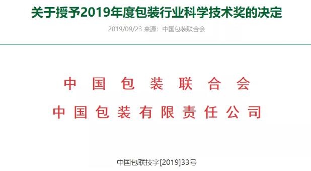 近日,中國(guó)包裝聯(lián)合會(huì)公布2019年度包裝行業(yè)科學(xué)技術(shù)獎(jiǎng)授獎(jiǎng)項(xiàng)目。共有21個(gè)項(xiàng)目獲獎(jiǎng),其中紙包裝行業(yè)有3家企業(yè)獲三等獎(jiǎng)。