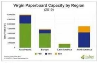 縱觀塑料飲料杯,用紙張替代全球10%的塑料杯,估計需要588,000噸杯子,比2019年全球產能350萬噸增加18%。目前,2019年之后沒有新的杯子產能宣布。 如果我們計算在美國和歐洲可能的替換塑料包裝,因為公眾對塑料廢物的關注仍在繼續,Fisher估計,用紙替代5%的塑料將消耗150萬噸紙。假設這一新產品是紙板(用于食品和飲料),下圖顯示這些品種在未來五年內實際和宣布的全球產能總量僅增加180萬噸。如果更廣泛地考慮紙板,包括回收品種,那么SmithersPira預計,到2022年,包裝紙板的需求將每年增長4%。
