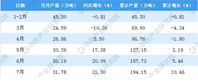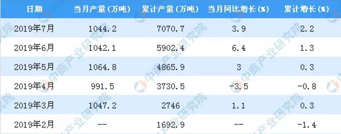 據(jù)中商產(chǎn)業(yè)研究院數(shù)據(jù)庫顯示,2019年1-2季度全國機(jī)制紙及紙板產(chǎn)量有所增長,2019年7月全國機(jī)制紙及紙板產(chǎn)量為1044.2萬噸,同比增長3.9%。2019年1-7月全國機(jī)制紙及紙板產(chǎn)量為7070.7萬噸,同比增長2.2%。根據(jù)中商情報(bào)網(wǎng)的數(shù)據(jù)統(tǒng)計(jì)了2019年1-7月全國部分省市的機(jī)制紙及紙板產(chǎn)能情況。其中廣東省在2019年1-7月機(jī)制紙及紙板產(chǎn)量最高,為1270.68萬噸,同比增長3.34%。 (▼2019年1-7月全國機(jī)制紙及紙板產(chǎn)量統(tǒng)計(jì)數(shù)據(jù))