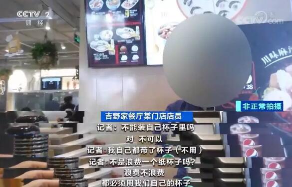在北京,國內(nèi)首部以立法形式規(guī)范垃圾處理行為的地方性法規(guī)——《北京市生活垃圾管理條例》的修訂備受關(guān)注。 我們注意到,條例中的第26條第一款被修改為:“餐飲經(jīng)營單位和餐飲配送服務(wù)提供者不得主動向消費者提供一次性餐具,并應當設(shè)置醒目標識。”這也意味著,這項《條例》一旦通過,各商家則有責任和義務(wù),主動減少一次性用品的使用。 不過,在我們的日常生活中,隨著外賣、外帶模式的興起,一次性餐具、一次性紙杯的使用規(guī)模依然很大。那么,對于可能出臺的新規(guī),餐飲企業(yè)是否做好了準備?央視財經(jīng)記者進行了調(diào)查。 城市的環(huán)保勁敵:泛濫的一次性餐 記者來到一家連鎖餐廳,點了一份牛肉飯?zhí)撞停渲杏幸槐嬈,當記者詢問是否可以使用自己的杯子時遭到了拒絕。
