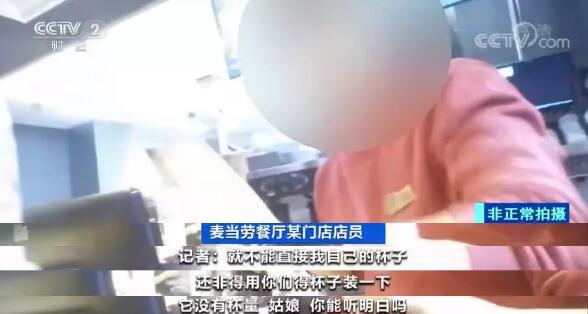 走訪中,記者發(fā)現(xiàn),商家允許消費者使用自帶杯的寥寥無幾,即使允許也要用本店紙杯子裝好再倒入消費者杯子,紙杯子依然不能減少。 麥當勞餐廳某門店店員:如果每個人來了都跟我們這么說,我們這杯子都不用訂了,對吧?肯定到哪有哪的標準,我們有我們的標準。我們的售賣機制就是這樣的,就要使用我們的杯子。 在門店點餐商家會主動提供一次性杯子,那點外賣的情況如何呢?
