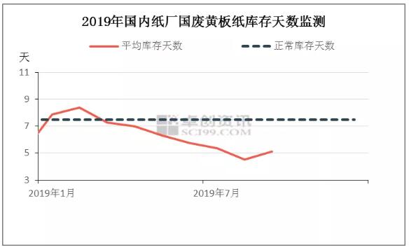 2019年紙廠廢舊黃板紙庫(kù)存天數(shù)為6.39天