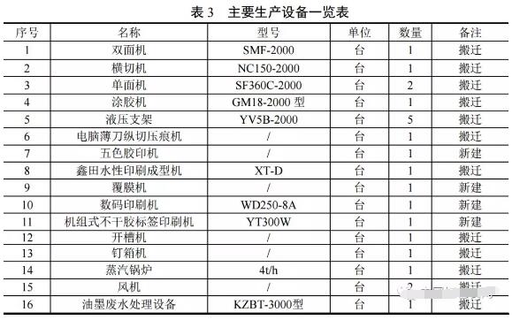 項(xiàng)目施工期擬定為12個(gè)月,計(jì)劃于2020年3月開始施工,2021年3月施工全部完成并進(jìn)行竣工驗(yàn)收。項(xiàng)目主要生產(chǎn)設(shè)備包括雙面機(jī)、橫切機(jī)、單面機(jī)、覆膜機(jī)、數(shù)碼印刷機(jī)等。
