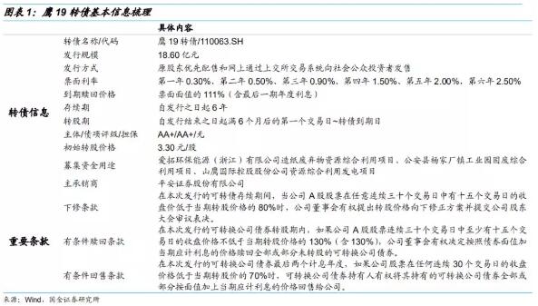 導(dǎo)語:12月10日晚,山鷹國際控股股份公司發(fā)布公告,將于2019年12月13日發(fā)行18.60億元可轉(zhuǎn)債,每張面值為人民幣100元,共計(jì)1860萬張,186萬手,按面值發(fā)行。此次募集資金將用于“愛拓環(huán)保能源(浙江)有限公司造紙廢棄物資源綜合利用項(xiàng)目”、“公安縣楊家廠鎮(zhèn)工業(yè)園固廢綜合利用項(xiàng)目”、“山鷹國際控股股份公司資源綜合利用發(fā)電項(xiàng)目”。