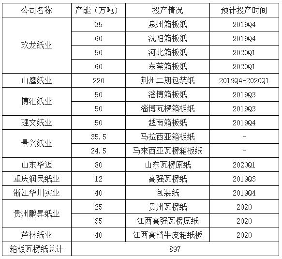 圖表來源:東吳證券研究所 箱板瓦楞紙投產情況