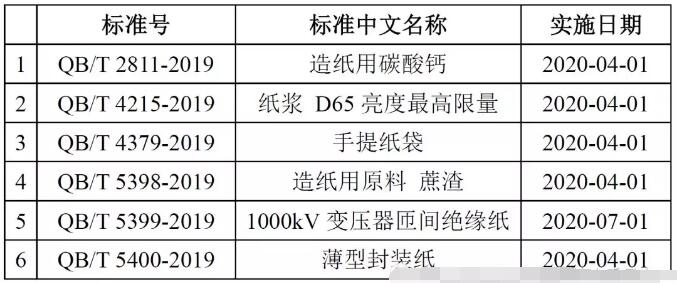 近日,工業與信息化部批準公布了一批行業標準,其中涉及造紙行業標準6項,具體見下表,請各相關單位積極實施新標準。