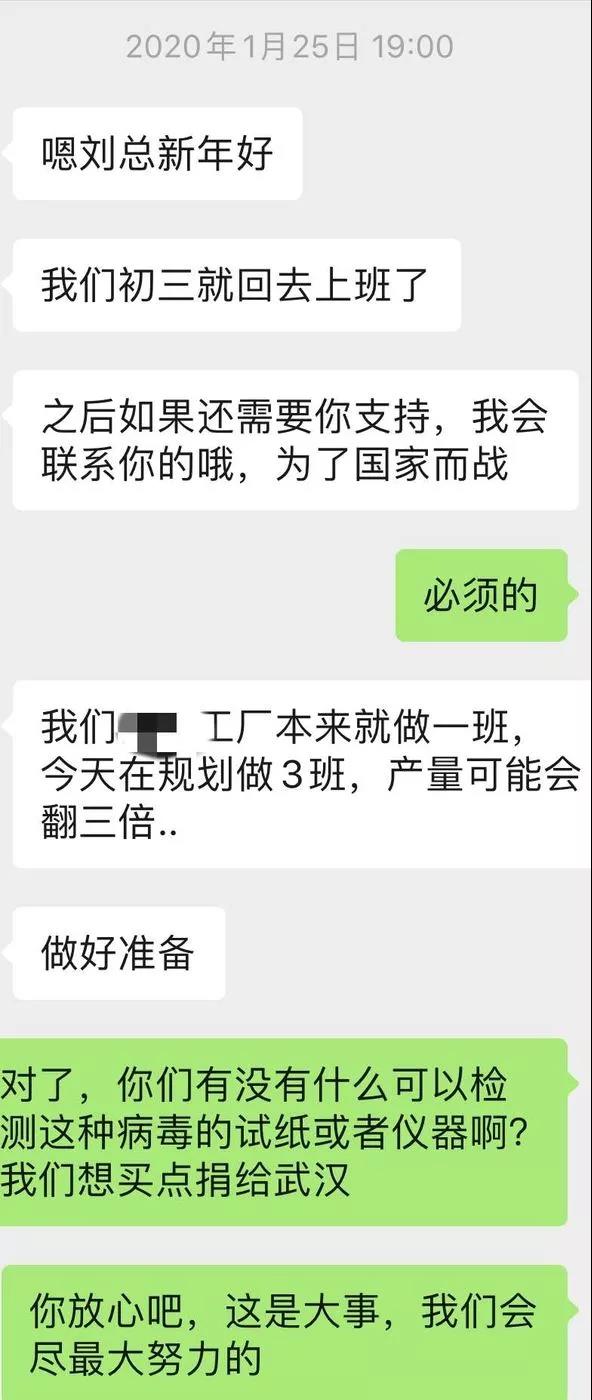 劉總也動用所有社會資源,緊急籌集到了一批防疫物資。于1.30日口罩到貨10000個、消毒水到貨40L、消毒凝膠到貨45L、消毒粉到貨12kg,確保了工廠生產期間所需的防疫物資儲備。