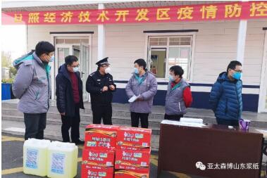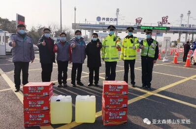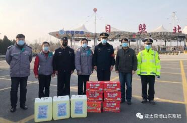 2月10日下午,亞太森博(山東)漿紙有限公司防疫領(lǐng)導(dǎo)小組、公司黨委組織部分黨員和志愿者代表到日照城區(qū)主要高速公路出口防控檢查站,慰問堅(jiān)守在疫情防控一線的公安、交通、衛(wèi)生防疫等執(zhí)勤人員,向他們表達(dá)最誠(chéng)摯的敬意并捐贈(zèng)消毒液、防疫器材和食品等,為他們加油鼓勁。