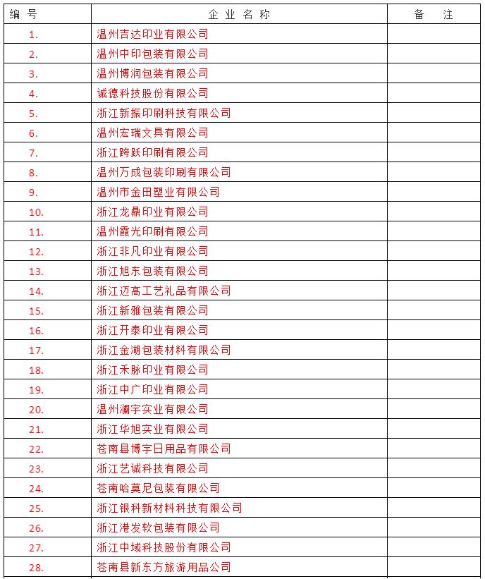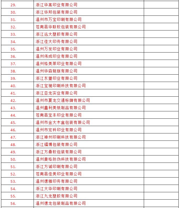 導語:截至2月18日,浙江省龍港市發布:規上印刷企業復工復產名單(72家);規上印刷企業復工復產已備案名單(87家);規下印刷企業已復工名單(55家);商貿(印刷)企業復工名單(12家)。具體名單如下: