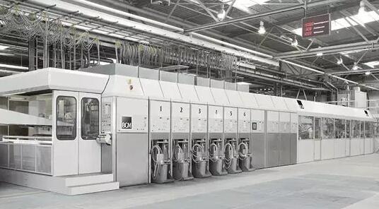 聯線的柔印折疊糊盒機或FFG代表了完整的紙箱生產解決方案。在為特定需求選擇FFG時,瓦楞紙板加工商面臨諸多選擇。在全球最新紙箱印刷聯動線技術報告中,將對全球領先的制造商和供應商做出相關分析。 ◆◆專業的重型包裝生產設備◆◆ BGM是德國家族企業Bahmüller和Göpfert合作經營的企業。自1982年以來,BGM推出了Mid和Jumbo系列的高端柔印折疊糊盒生產線,并在全球范圍內有諸多成功的安裝案例。獲得這種成功的很大一部分因素歸功于BGM的Jumbo系列的紙箱加工生產線,該公司專業生產加工最大尺寸為2400×5500mm的大型和重型瓦楞紙板。不僅是五層紙板,最重的七層紙板也可以通過一條生產線完成(折疊、糊盒、打包)。從紙板坯料的預進料到成品堆疊的整個過程由BGM的FFG全覆蓋。 預進料和送料裝置保證了紙張的連續供應和平穩的操作。柔印單元設計為1:1的印刷輥筒與壓印輥筒,因其高精度和堅固性而聞名。該機器可選配有腔式刮刀和激光雕刻陶瓷網紋輥,以確保最佳的印刷質量和較少的油墨浪費。建議使用帶有獨立預破碎裝置的雙開槽機用于重型五層和七層瓦楞紙板。在這種配置中,該機器不僅可以加工標準的RSC箱型,還可以加工用于化工產業的Octabins等專業產品。