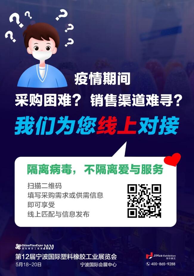 5月春暖花開相約寧波? 5月18-20日 寧波國際會展中心 為企業開通線上配對平臺 病毒無情,人間有愛。我們共同擔當,共度時艱。疫情期間為解決企業采購困難,銷售渠道受阻等問題,寧波橡塑展積極發揮資源集中優勢,為企業提供線上供需進行對接平臺,免費為供、需雙方提供對接服務。