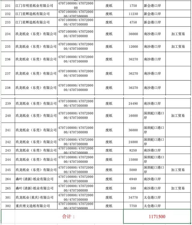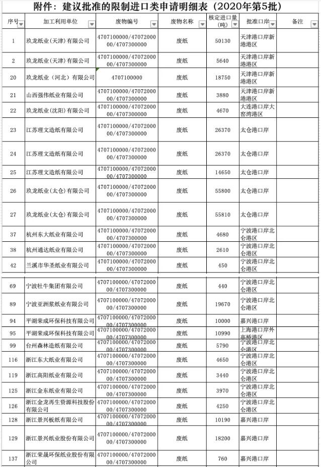 2020年第五批限制類進口公示 廢紙核準總量117.15萬噸