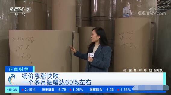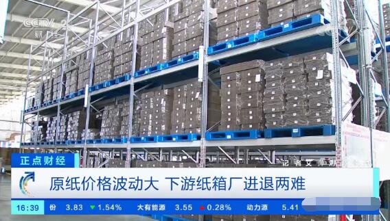 鄭雷表示,如果原紙材料價格平穩、工廠有穩定的訂單,加上管理水平較高的話,企業盈利較為可觀。但現在原紙成本占總成本的比重較大,原紙價格又波動劇烈,縱然管理效率再高、訂單穩定,企業毛利卻在逐年下降。 上海永盛包裝有限公司董事長鄭雷:現在毛利達到20%-25%可能就不得了了。我們行業很多都是跑紙板的,跑紙板的企業可能毛利15%到18%就算不錯,這其實是很低的水平。 紙價急漲快跌,紙箱廠進退兩難,毛利逐年下降,這種情況極其不利于行業的健康有序發展。希望通過央視財經頻道的此次報道,紙品產業鏈上下游企業能夠共同穩定價格,迎來健康、高質量的發展模式。