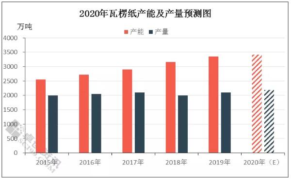 據卓創資訊的不完全統計,2020年的新增瓦楞紙產能約為362萬噸。據了解,貴州鵬昇紙業將新增兩條生產線,一條生產線幅寬5600mm,年產能25萬噸;另一條生產線幅寬6600mm,車速1000m/min,年產能大約為25萬噸。 另外白山琦祥也預投產兩條幅寬為5600mm的瓦楞紙生產線。但考慮到行情降溫、新項目審批嚴格及企業資金不足等一系列問題,有部分新增產或許不能如期投放。另外伴隨部分落后產能的淘汰,或僅有60萬噸的產能增加量。 2020年瓦楞紙市場利好支撐仍有限,紙企開工負荷相對平穩,預計瓦楞紙產量在2189萬噸,較2019年小幅增加3.91%。