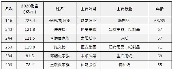 5月12日,新財富500富人榜重磅揭曉,這是自2003年以來,新財富推出的第18份榜單。 2020年的榜單數據,一改去年的低迷。上榜的500富人掌握財富首次突破10萬億大關,高達10.7萬億元,相當于2019年中國GDP的十分之一。人均財富則從2019年的162億元升至214億元,創下歷史新高。其門檻再次大幅提高,從去年的45億元回升至63.3億元,同比大幅上漲了40%,與2019年富人榜門檻史無前例下滑30%,從64億元跌至45億元,形成鮮明對比。 互聯網行業今年在榜單上再次大肆擴張,上榜者數量從去年的80人增加到96人,人數同比上漲20%。而傳統的造紙行業則只有6人(家族)入選。張茵/劉晉嵩母子以226.4億元的財富位列造紙行業第一位。
