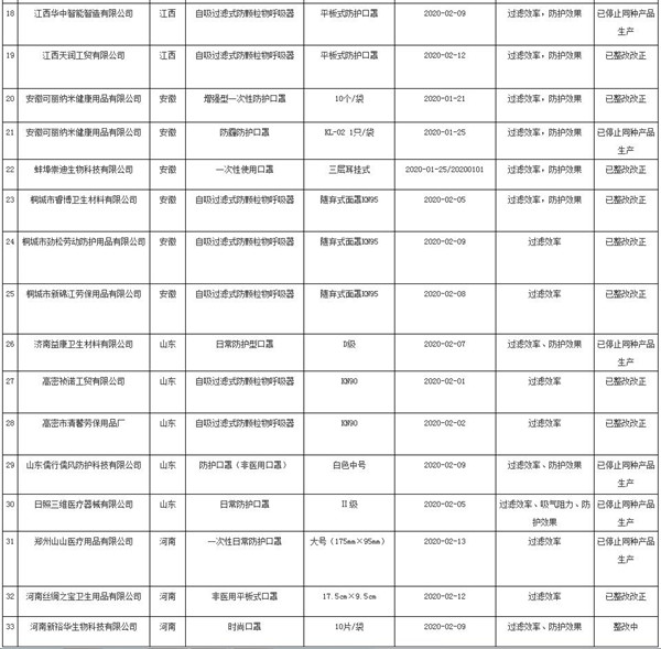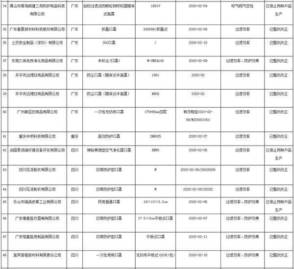 4月27日,市場監管總局官網公布非醫用口罩質量監督抽查不合格批次名單。今年2月以來,市場監管總局組織開展了非醫用口罩產品質量監督專項抽查,共檢出47家企業的51批次不合格產品,現將非醫用口罩質量監督抽查不合格批次名單公布如下。