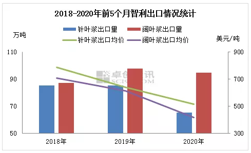 引言:2020年公共衛(wèi)生事件導(dǎo)致全球紙漿市場(chǎng)不確定性增強(qiáng),智利作為紙漿主要生產(chǎn)國(guó)及中國(guó)針葉漿和闊葉漿的主要來(lái)源國(guó),通過(guò)分析2020年前5個(gè)月智利海關(guān)出口數(shù)據(jù),發(fā)現(xiàn)智利紙漿出口結(jié)構(gòu)及流向出現(xiàn)新的趨勢(shì)。 1.出口結(jié)構(gòu):供需面同時(shí)作用 闊葉漿比例增加