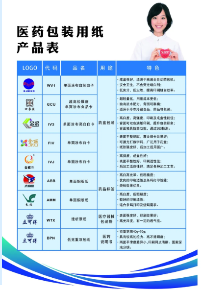 APP金光紙業致力于為客戶提供最具優勢的紙品,在醫藥用品包裝用紙領域,產品憑借環保、安全、輕量化、創新技術以及精良的品質,不斷滿足終端個性化需求,提供差異化解決方案,為客戶創造更多價值,助力醫藥包裝行業健康發展。