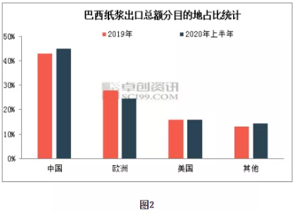 巴西公共衛生事件仍在蔓延,作為全球最大的商品漿生產國,紙漿產銷關系到全球紙漿供應穩定,隨著這進出口數據的陸續公布,卓創資訊帶你看上半年巴西紙漿市場“虛”與“實”。 巴西國內疫情蔓延迅速紙漿供應量不減反增 2月25日巴西發現第一例新冠疫情病例后,新增感染人數持續增加,5月17日后每日新增確診病例穩定于1萬例以上。巴西紙漿供應量能否穩定成為全球造紙市場業者的焦點,特別是6月初巴西淡水河谷鐵礦石供應受疫情影響宣布停機后,紙漿減產的推斷顯得愈發合理。市場發展不是簡單的主觀推斷,更需要客觀的信息和數據支撐。巴西疫情爆發后,當地主要漿廠都采取及時、完善的防疫措施,Suzano公司實行疫情期間特殊期間工作模式,且為了確保紙漿供應穩定,推遲上半年年度檢修至下半年。Klabin成立了應急委員會,不斷評估預防和抵抗COVID-19的最佳做法,確保生產連續性。數據方面,如圖1所示,2020年上半年巴西紙漿出口量延續增長趨勢,較2019年同期增加1%,達到812萬噸。綜合來看,疫情影響紙漿供應減量為虛,巴西漿廠積極控制,確保穩定供應為實。